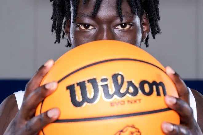(PHOTO): Drake sophomore forward Okku Federiko poses for a portrait during media day on Oct. 13, 2025, at the Knapp Center in Des Moines. (Cody Scanlan/The Register)