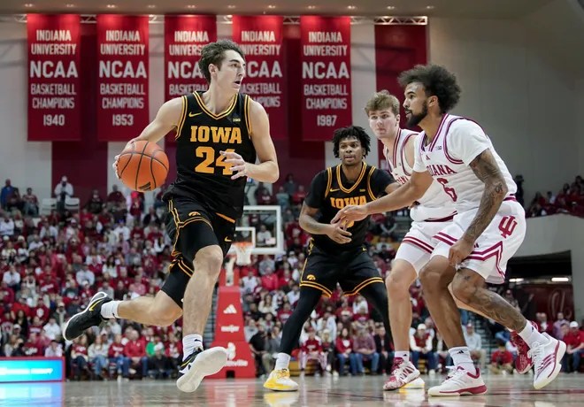 Indiana closed to within 49-45 in the second half, but soon thereafter Stirtz dropped a couple of 3s and Banks had a three-point play followed by a midrange jumper to put Iowa in command 62-48 with seven minutes remaining. The Hawkeyes’ next six points came at the free-throw line and Banks followed with a layup for a 70-50 lead with four minutes remaining.