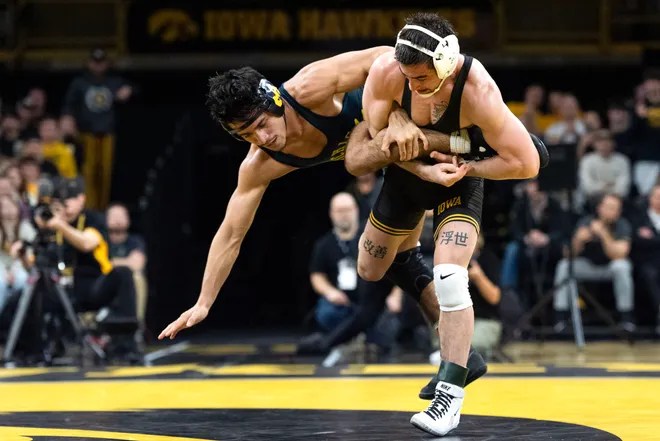 After losing four of the first five bouts, Iowa rallied to win 19-17. The Hawkeyes won four of the last five matches as well Drake Ayala fittingly got to deliver the knockout punch in his last home dual, securing a 21-5 technical fall to complete comeback in the deciding bout.