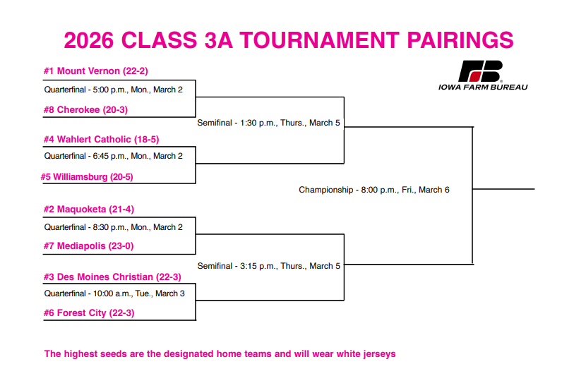Cherokee made the trip to Des Moines a season ago, losing in the 3A quarterfinal to Estherville-Lincoln Central. This year marks the tenth time Cherokee has qualified for the state tournament (1977, 1991, 2003, 2005, 2016, 2017, 2021, 2023, 2025, and 2026).