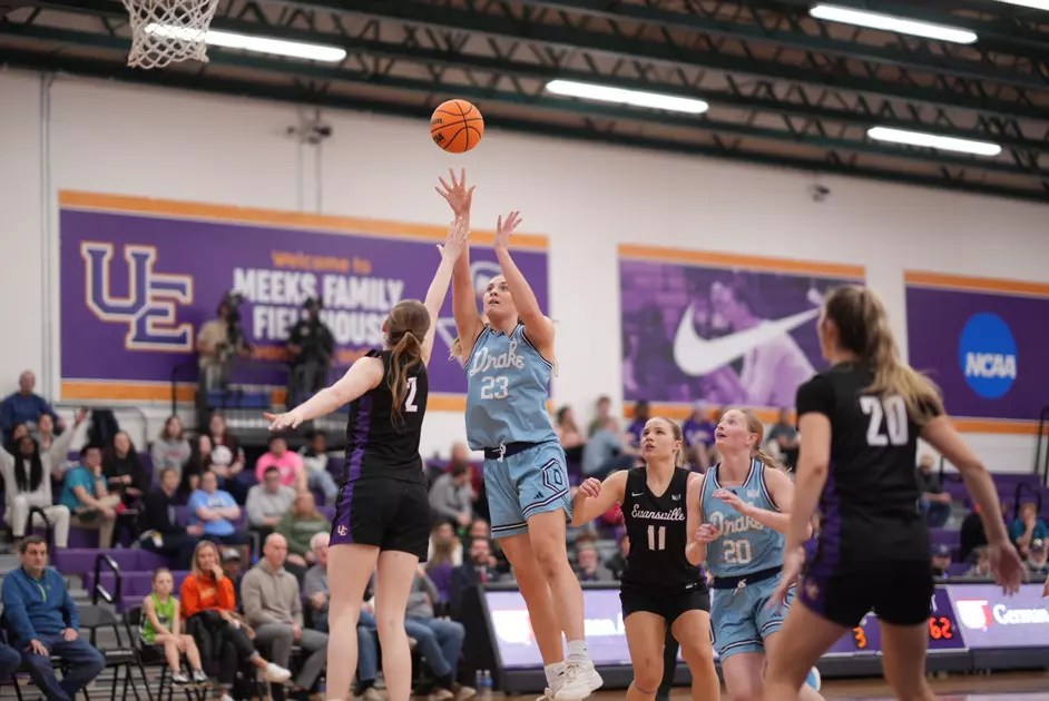 Drake held on to its respectable margin for much of the final stanza, but Evansville refused to go away quietly. The Purple Aces leaned on star sophomore Camryn Runner, who surpassed the 1,000-point mark for her career with a 36-point effort in Thursday’s game, to crawl closer to the Bulldogs. Runner hit a pair of free throws to get within five before a Kylee Norkus floater got the score within a possession.