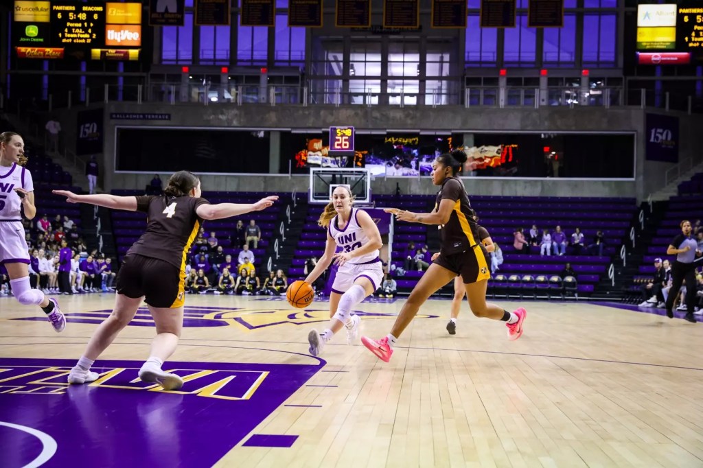 CEDAR FALLS, Iowa — UNI women’s basketball hosted the Valparaiso Beacons inside the McLeod Center on February 26. It was difficult for either team to establish a pace and rhythm in the matchup, with 48 combined fouls hindering the offensive flow UNI was able to capitalize and, with the help of four double-figure performances, came out ahead of the Beacons, 92-54.