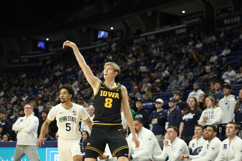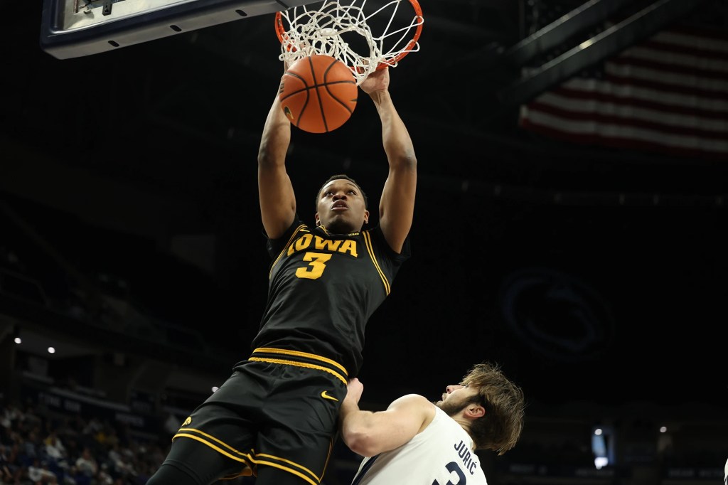 Iowa led by four at halftime, and Koch hit an immediate 3 to begin the second half, but Penn State countered in a game that saw eight ties and 15 lead changes. The Hawkeyes used a 9-0 run capped by a Cam Manyawu dunk off a neat feed from Kael Combs to take a 67-62 lead with 4:30 to go.